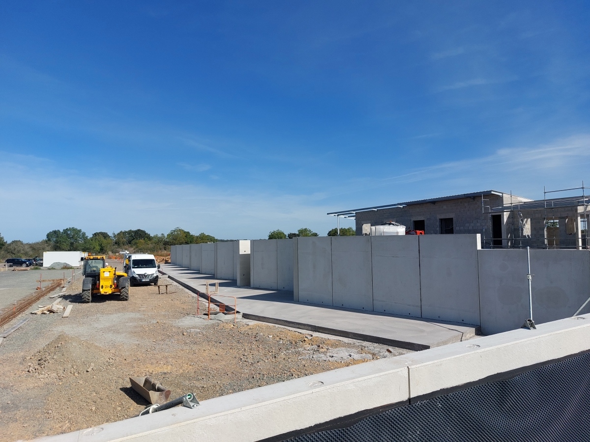 - Plus de 1000 m² d’aire aménageable avec des méga blocs préfabriqués, également produits par AB Préfa. Ces blocs modulables permettent une évolution flexible de la plateforme de stockage, adaptée aux variations saisonnières et aux besoins futurs de la déchetterie.