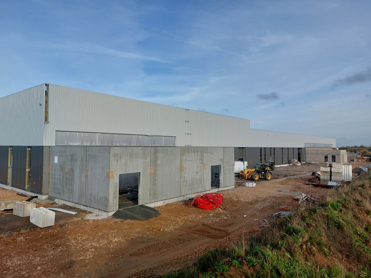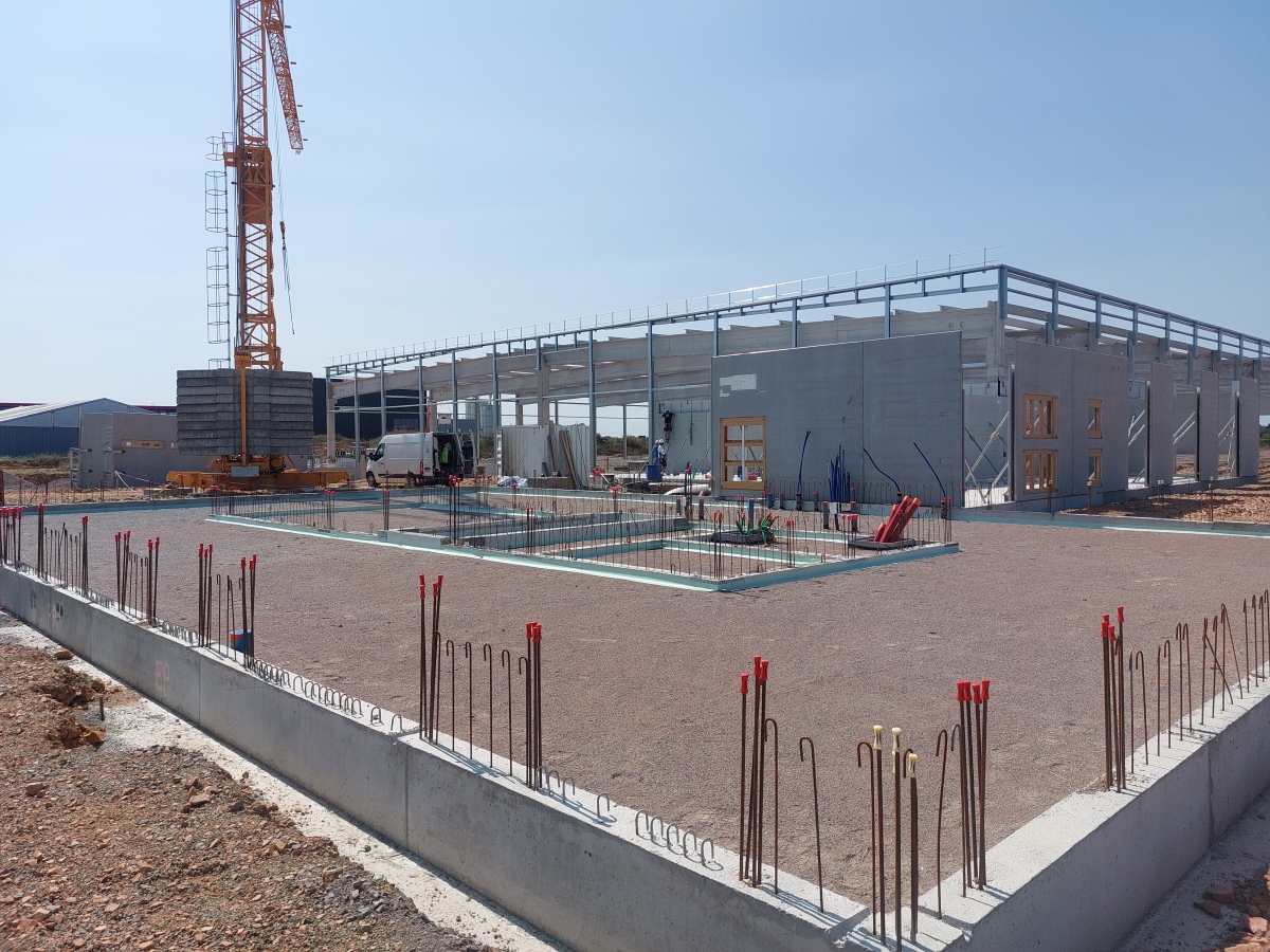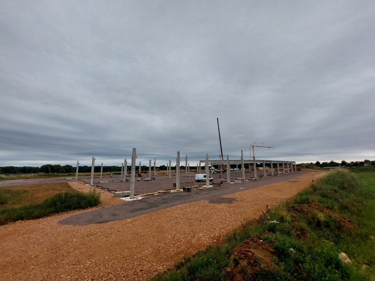 - Un hall de production de 6500 m², avec une structure en charpente béton armé (poteaux et poutres) conçue pour supporter les charges lourdes et les exigences de la production industrielle, et ses quais d'expédition.