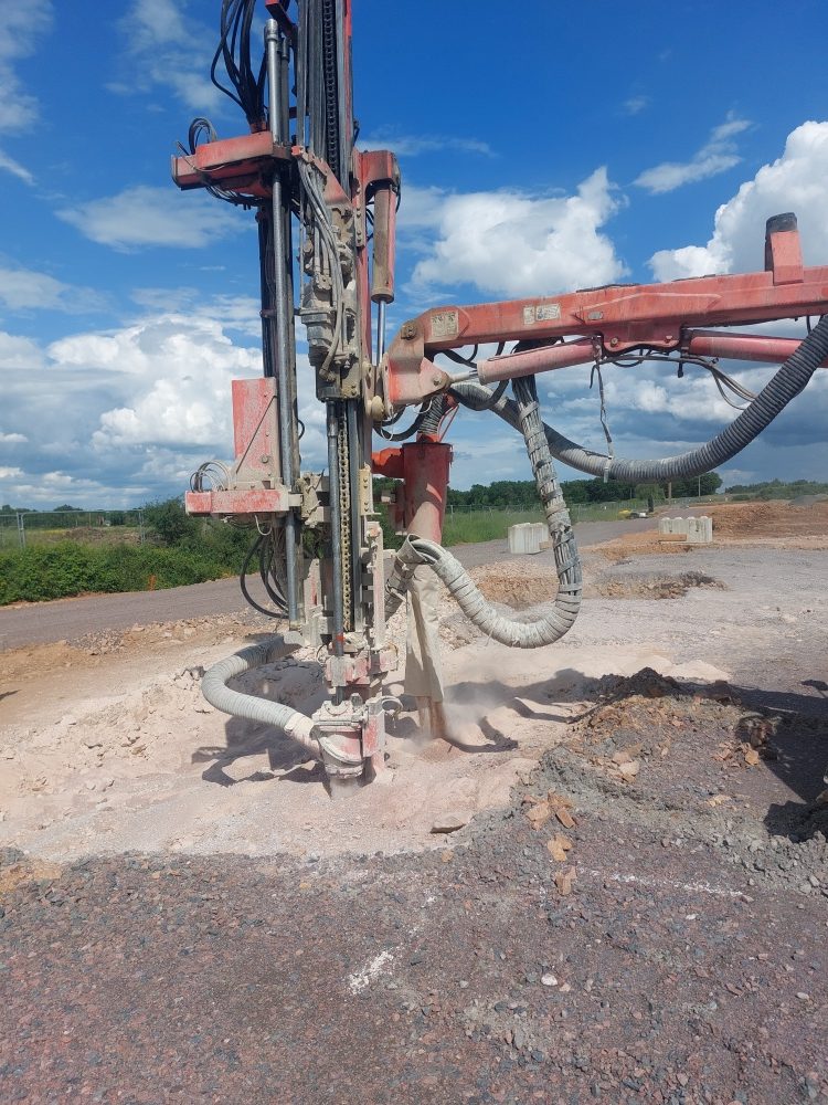 L’usine Sargam, destinée à la production de menuiseries industrielles, présentait un défi majeur : un sol en granit rose, réputé pour sa dureté. Pour y répondre, nous avons fait appel à des techniques de forage, permettant d’ancrer les fondations et de garantir la stabilité de l’ensemble du bâtiment. Une preuve supplémentaire de notre capacité à nous adapter aux contraintes géologiques locales.